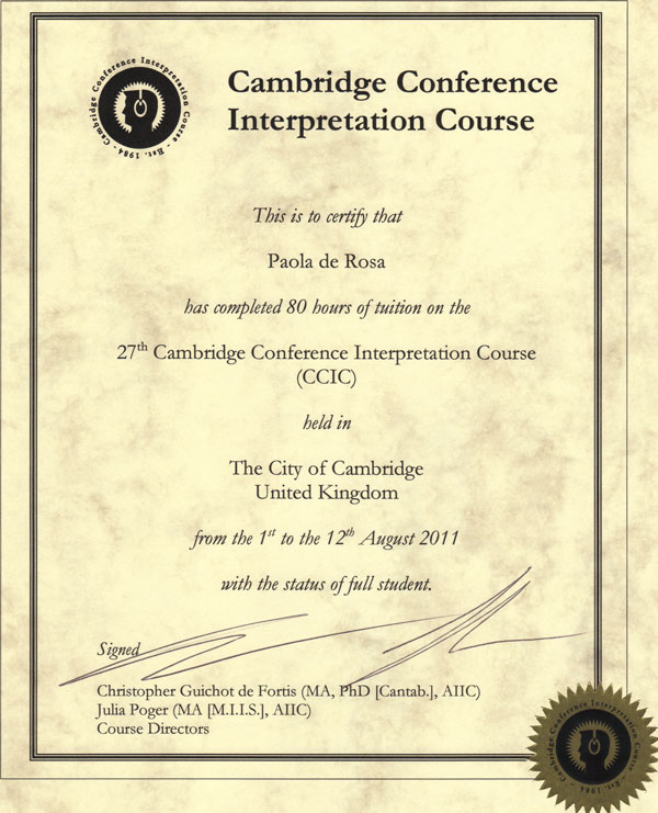 - Cours de remise à niveau pour interprètes de conférence CCIC Cambridge – 2011