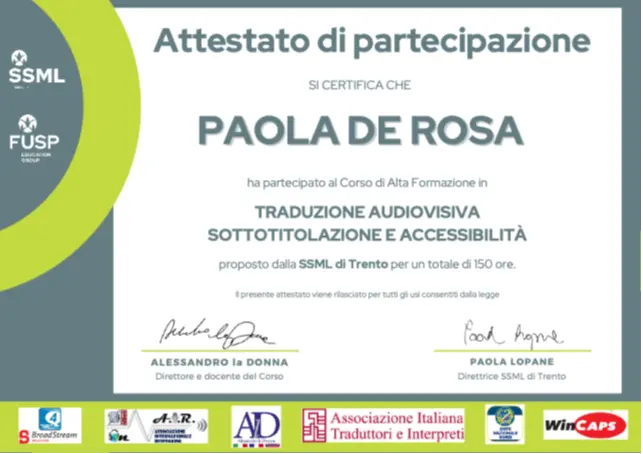 - Master en ligne en traduction audiovisuelle, sous-titrage et accessibilité proposé par la SSML de Trente pour un total de 150 heures (2022)